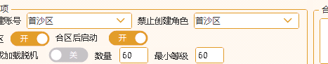 1、合区后禁止再让玩家创建账号而允许创建角色,在合区选项禁止创建账号后的下拉框中选择禁止创建账号的分区类型保存即可 2、合区后禁止再让玩家创建角色,在合区选项禁止创建角色后的下拉框中选择禁止创建角色的分区类型保存即可 3、如果两项功能都需要则都选择分区类型即可 特别注意:合击类型引擎目前不支持此功能,因引擎不带此效果!