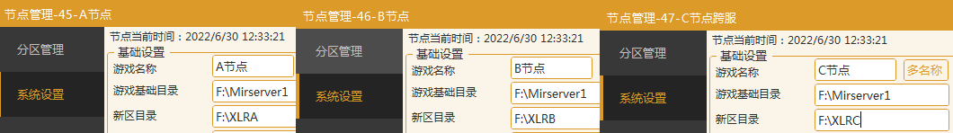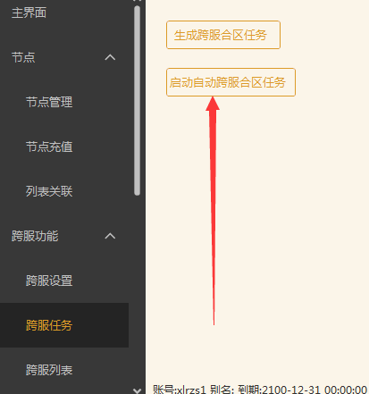 跨服合区说明 跨服说明:跨服合区至少是三个节点才可实现,图文教程以A、B、C节点为例,各位老G在设置时节点名称可自定义,但是必须为同一个平台下  1、开新区的A节点与B节点直接按照正常的去设置,合区模式全部右键删除  2、A、B、C节点的游戏名称、新区目录、充值平台分组编号必须要不相同  3、A、B、C节点的助手网关端口建议也要有所区分,避免到时分区数量过多导致混乱  4、不管是否在同一台服务器下开新区,开区时间尽量隔开几分钟,以免导致延误B节点开区  5、A、B节点登录器读取的列表文件名做好区分  7、C节点平台设置项中的分组编号分别填写A、B节点中的分组编号并且分组编号中间用英文逗号隔开  8、C节点中的开区选项点击上方的减号将开区列表全部删除  9、C节点—合区选项—合区列表里中合区模式必须存在 注:此项中的正式合首沙的合区周期与合区个数无需理会  10、C节点列表选项中的列表上传项留空即可  11、注:如果使用带有路径形式的大背包插件,而版本中设置的不同路径的大背包,需在这A、B、C个节点合区选项的跨服合区大背包中设置各自的路径,如果在同一磁盘下则无需设置  12、合区时有需要合并或清理的目录数据与文本数据,那么A、B、C节点合区选项中都必须要设置合并或清理文本目录  13、助手主控制台上点击左侧的跨服功能选项,然后再次点击添加跨服合区按钮  14、目标节点选择跨服C节点,合区周期与节点合区模式中的合区周期意思一样,唯一不同的是这里的0是代表第二天合区  15、合区时间(设置合区时间)  16、合区类型(默认首沙区,可自行选择)  17、点击两次加号选择A节点与B节点  18、其他无需做任何更改,只需要更改区总数即可(区总数即代表AB节点各自的开区数量)  19、最后我们点击确定,即代表跨服合区选项已设置完毕  20、点击列表关联—点击右侧的加号按钮,这里的被共享节点选择跨服C节点,然后双击所有节点中的A节点与B节点到右侧的共享节点一栏中点击确定  21、最后点击下方的保存按钮来进行保存好设置  23、点击左侧的跨服功能,再点击跨服任务菜单选项,最后点击(启动自动跨服合区任务)按钮  24、点击主控制台上的系统选项,再点击(启动所有节点任务)按钮来启动A、B、C节点  25、注:开助手网关的时候建议尽量的使用每个服务器界面一个助手网关