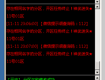 存在相同名字的分区 开区任务终止  1、检查分区列表中的这个区是测试区还是正式区 如果是测试区那么说明助手数据库中已存在这个分区编号的正式区 2、如果分区列表中的这个区已是正式区 那么就检查开区任务中是不是又存在着正式区的任务 3、如果是第一条同时又是开区中请联系官方技术人员修改助手数据库删除此分区 4、助手中点击分区管理—准备删除分区列表,然后找到已存在的这个分区右键删除即可 注意注意注意:右键删除时一定一定一定要仔细看提示,否则出现任何问题自负