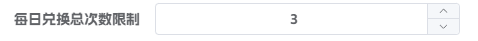 设置兑换限制 每个游戏账号兑换限制 1、点击新增填写相关信息 ①、类型(选择限制数量的货币类型,货币1或者是货币2又或者是物品)  ②、来源(选择限制数量的积分、钻石或碎钻)  ③、每日兑换总次数限制(总次数就是兑换的总次数限制,例如今日兑换了3次10点货币1,则货币1的兑换总数就是30,本次兑换20点,则计算总数就是50)  ④、每日兑换总数限制(总数是指兑换的货币1或货币2或物品的总数与当前兑换的货币1或货币2或物品的数量之和不能超过设置的兑换总数(不计算赠送))  注:具体最高兑换次数是多少次,请根据自身需求设定